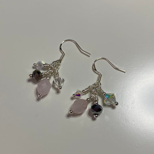 Rose Quartz, Grey & Swarovski Crystal Sterling Silver Earrings