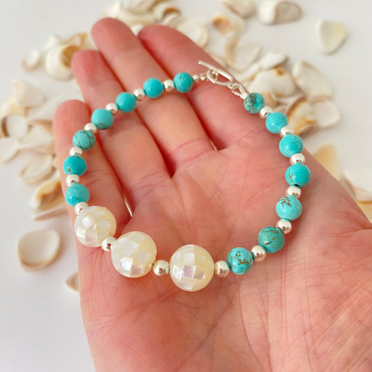 Rose Quartz, Freshwater Pearl & Sterling Silver Bracelet