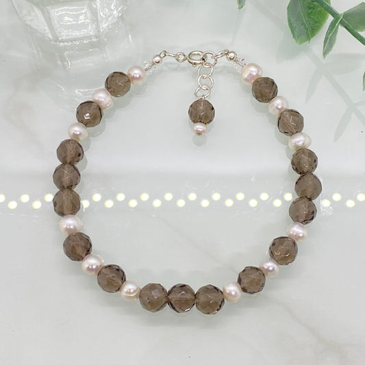 Smoky Quartz & Pearl Semi Precious Bracelet