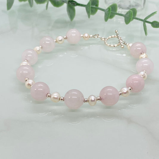 Rose Quartz, Freshwater Pearl & Sterling Silver Bracelet