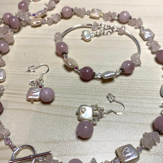 Kunzite, Rose Quartz & Pearl Semi Precious Set