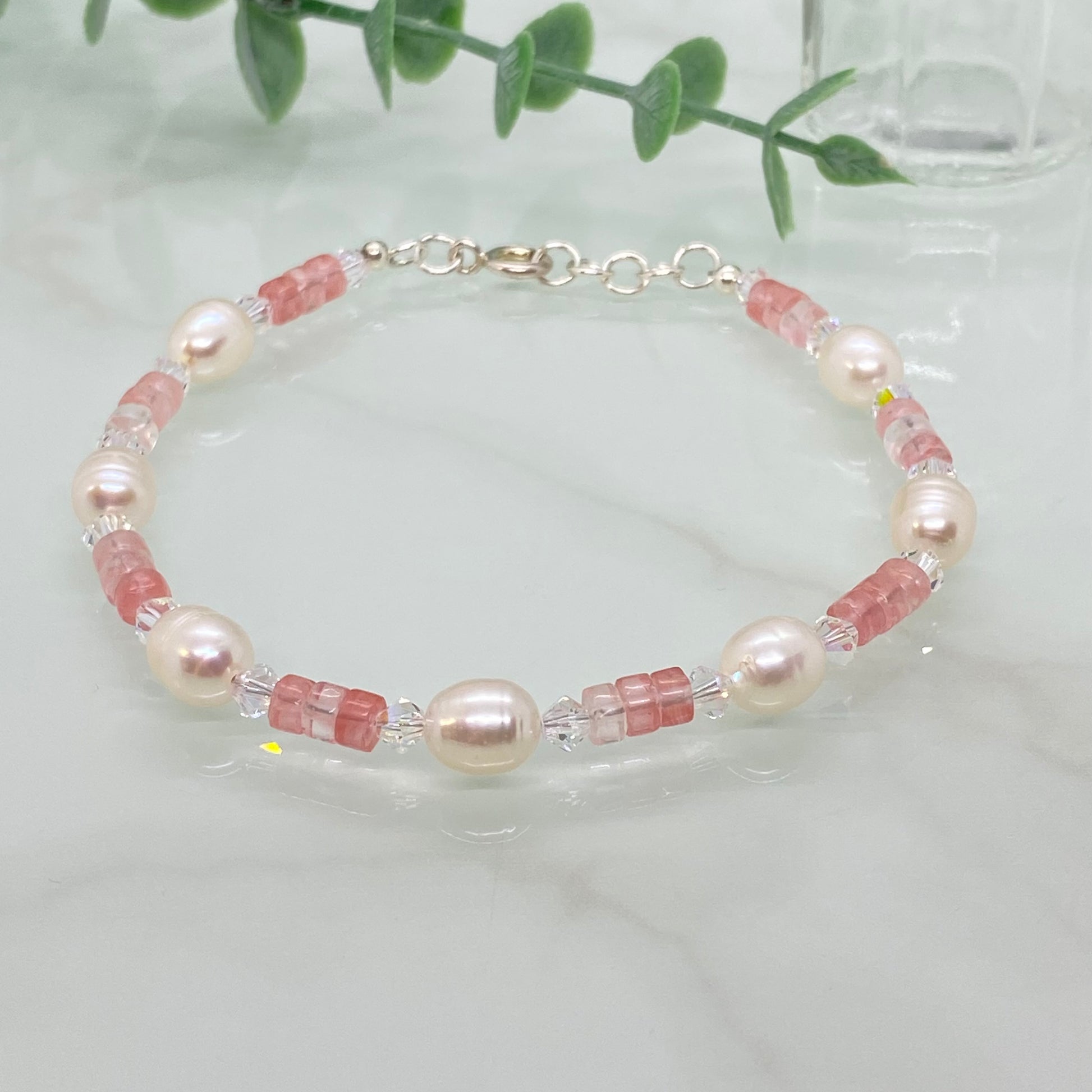 Cherry Quartz, Freshwater Pearl & Swarovski Crystal Bracelet