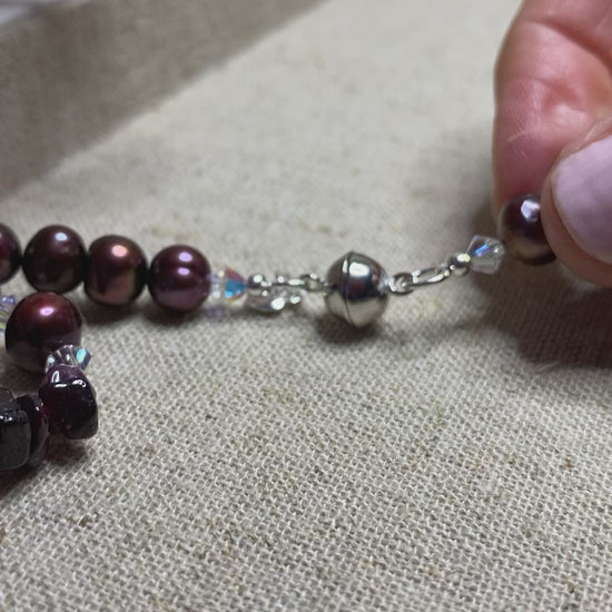 Garnet & Freshwater Pearl Necklace with Magnetic Clasp