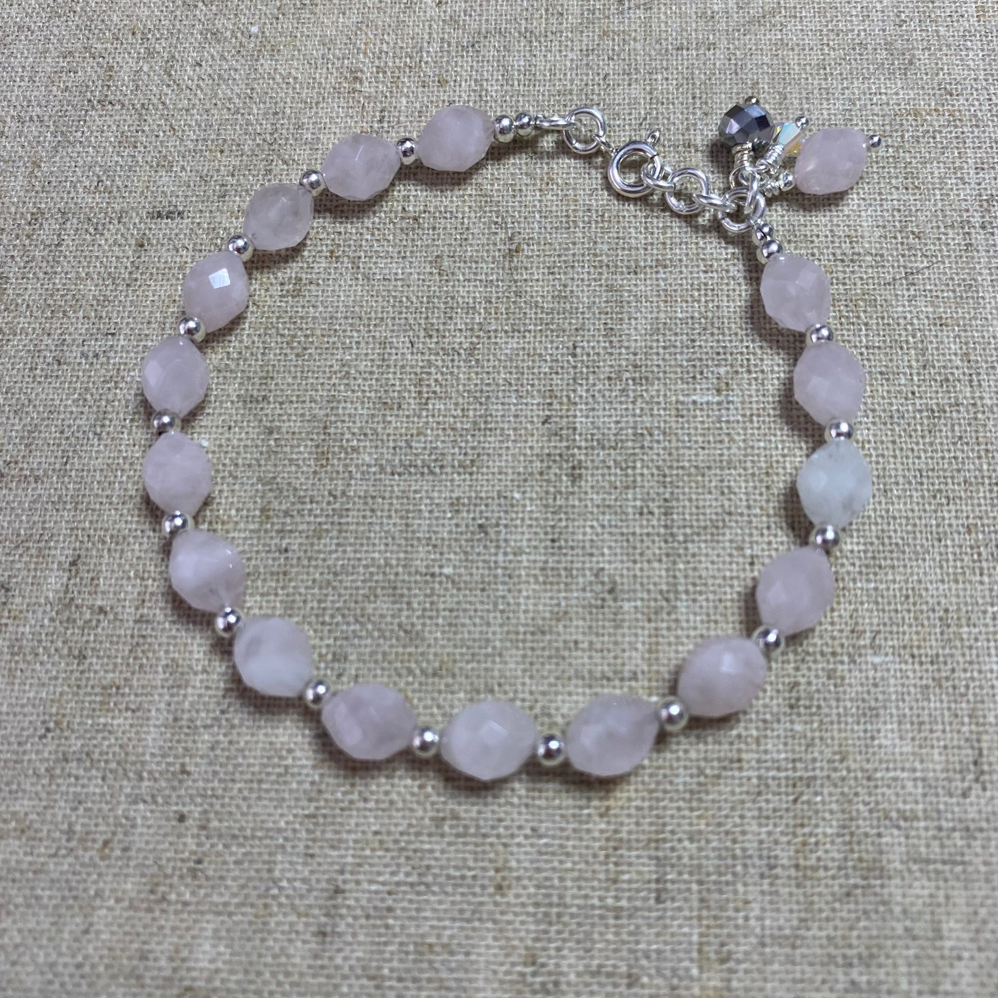 Soft, serene, and effortlessly elegant — this bracelet showcases natural Rose Quartz gemstones, celebrated for their gentle blush tones and soothing energy. Each faceted stone catches the light beautifully, complemented by sterling silver accents for a timeless, feminine finish.