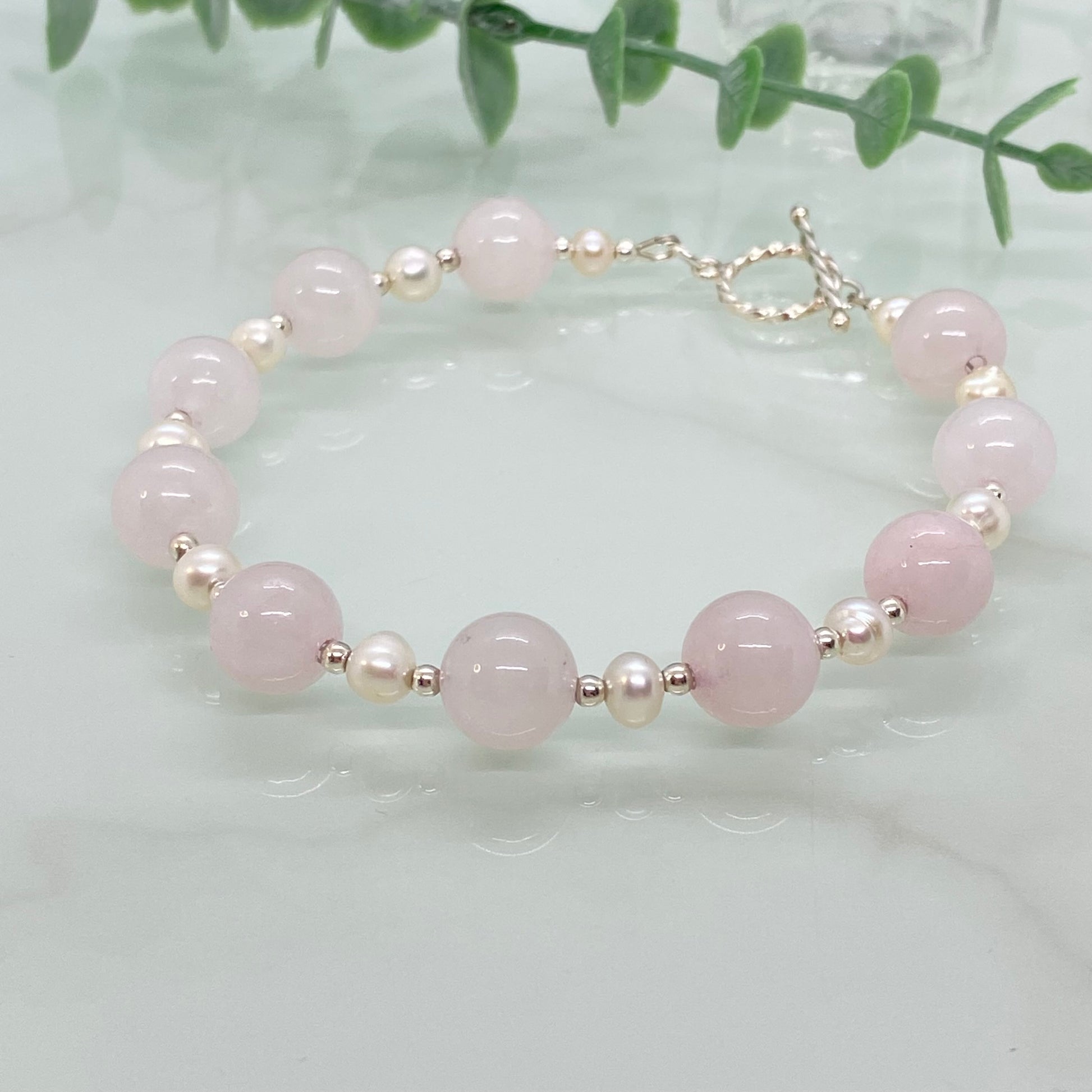 Rose Quartz, Freshwater Pearl & Sterling Silver Bracelet – Gentle Elegance with Heartfelt Meaning